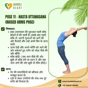 Move to Hastauttanasana (Raised Arms Pose) – Stretch arms backward while inhaling.