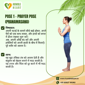 Begin with Pranamasana (Prayer Pose) – Stand tall, palms together at the chest.