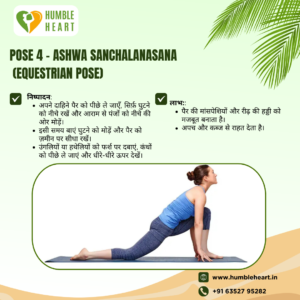 Step into Ashwa Sanchalanasana (Equestrian Pose) – Extend one leg back, keep the other bent.